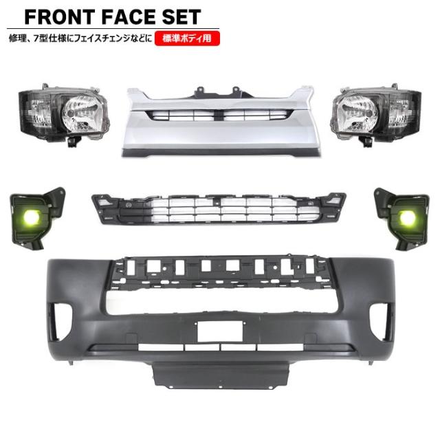 200系 ハイエース 標準 7型 8型 フロント 7点 フェイス チェンジ セット Ver.11 ハロゲン ヘッドライト グリル バンパー LEDイエローフォグ