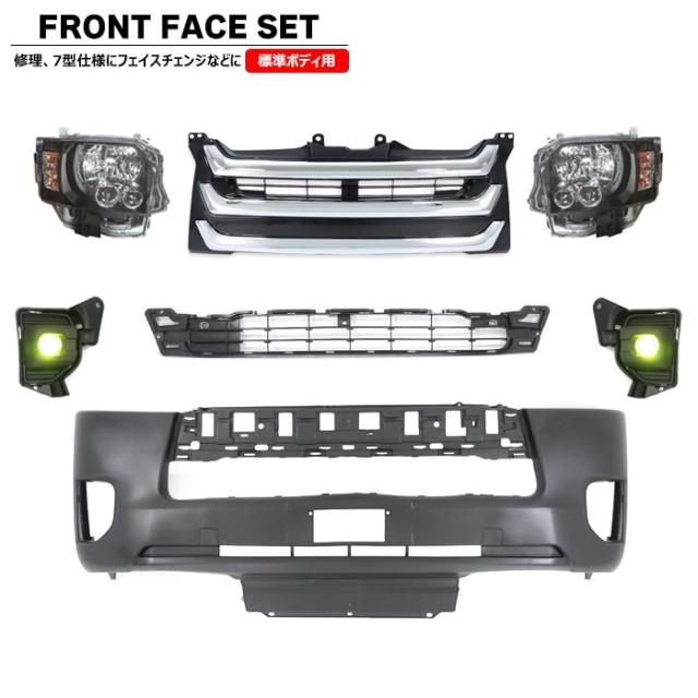 200系 ハイエース 標準 7型 8型 フロント 7点 フェイス チェンジ セット Ver.16 LED ヘッドライト グリル バンパー LEDイエローフォグ