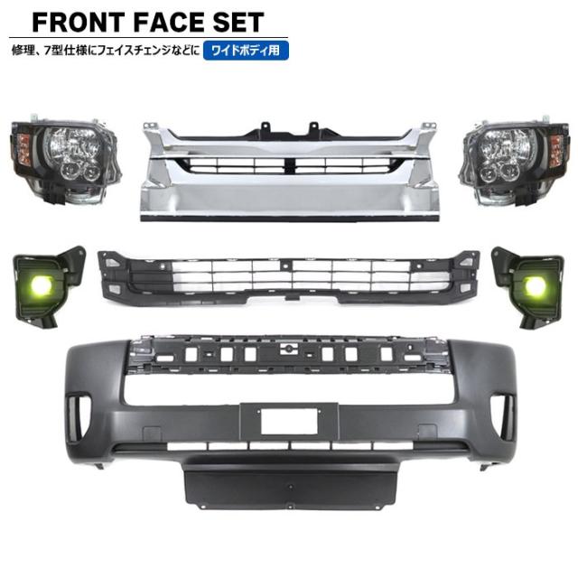200系 ハイエース ワイド 7型 8型 フロント 7点 フェイス チェンジ セット Ver.15 LED ヘッドライト グリル バンパー LED イエロー フォグ