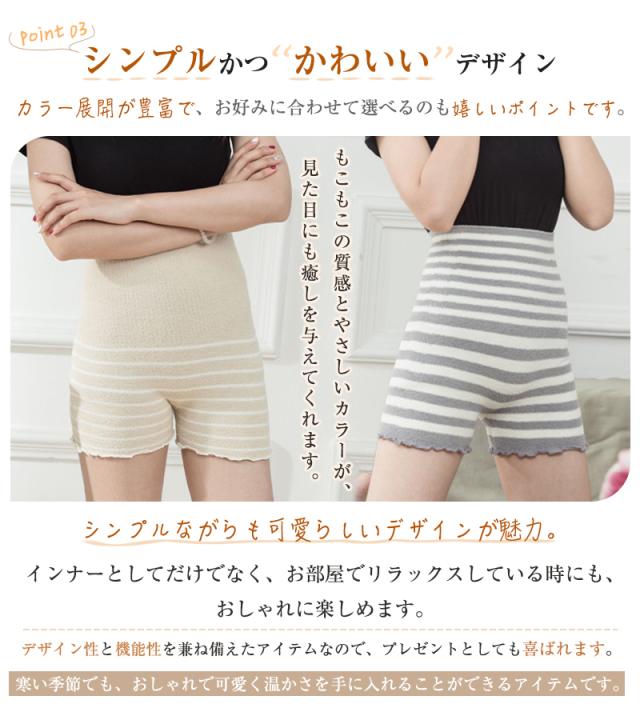 【2枚セット】腹巻きパンツ レディース ハイウエスト ショーツ もこもこ 毛糸パンツ ロング丈 ボーダー柄 冷え対策 温活パンツ レディース 妊活 マタニティ ルームウェア ロング丈 腹巻付き 妊婦 寒さ対策