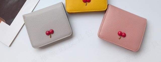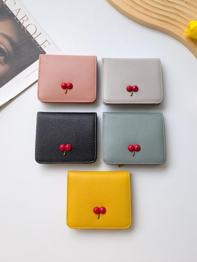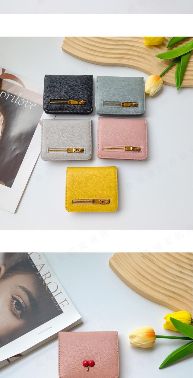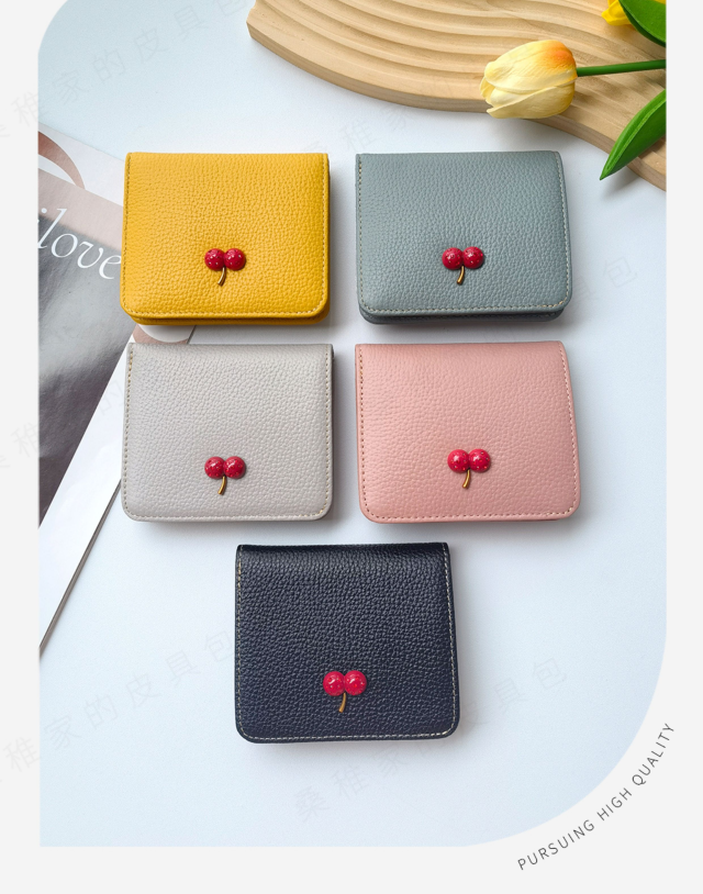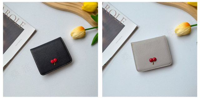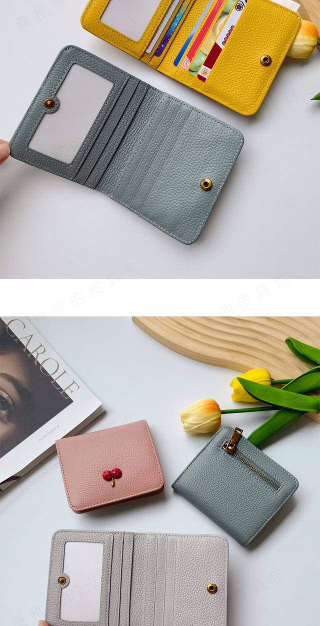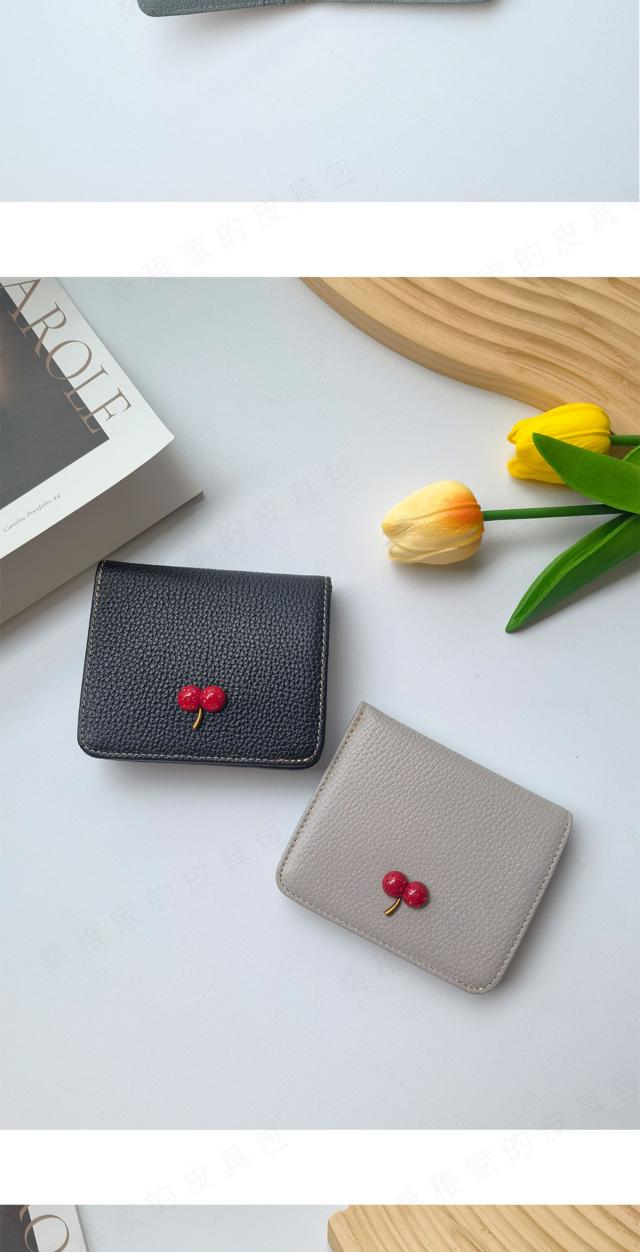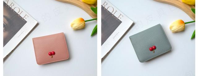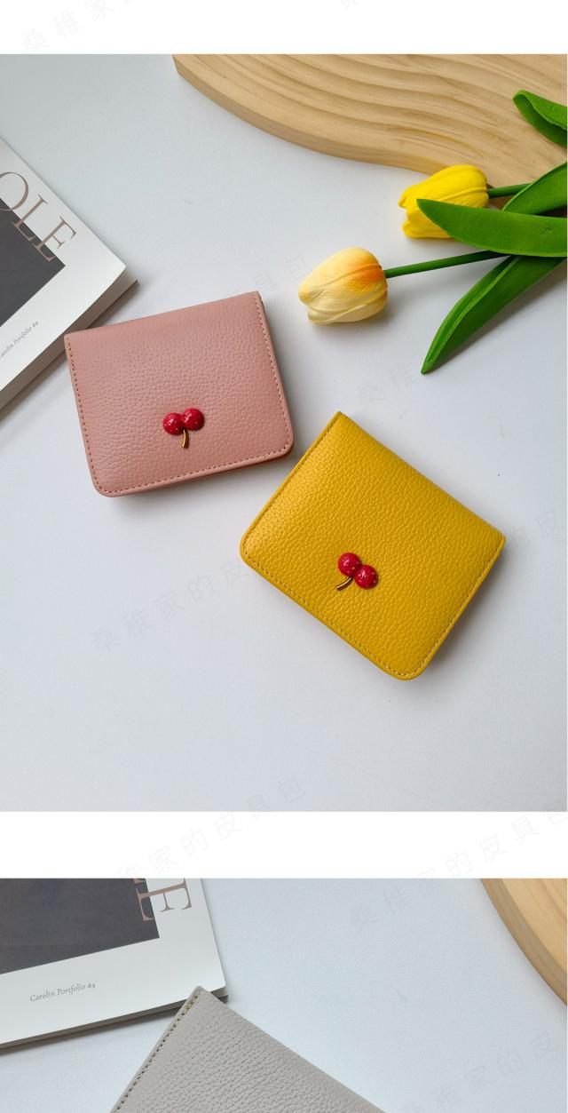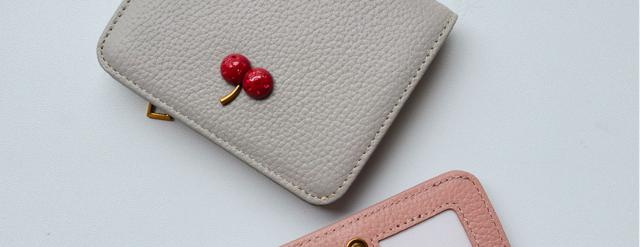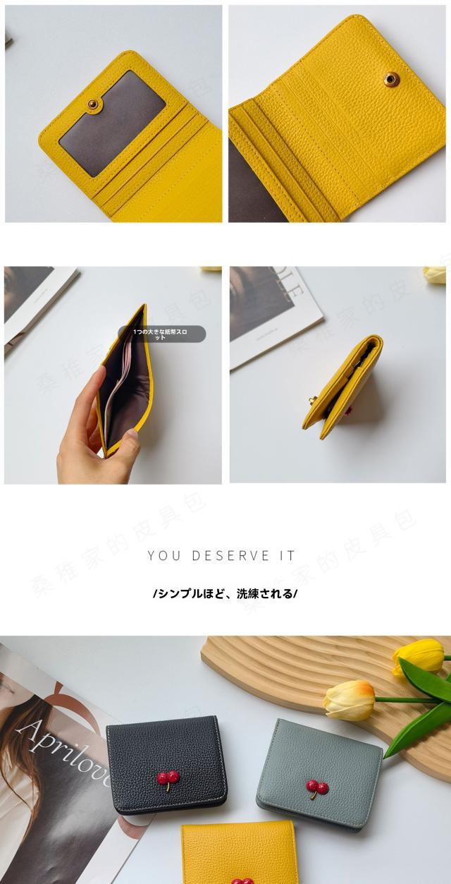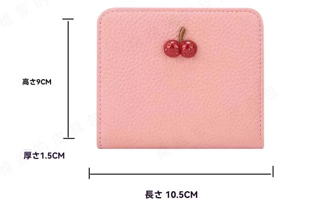 レディース 財布 二つ折り 本革 超薄型財布 さくらんぼ チェリー柄 可愛い ウォミニ カードホルダー ファスナー付き 収納 大容量 カードスロット7 つ 可愛い ウォ-27