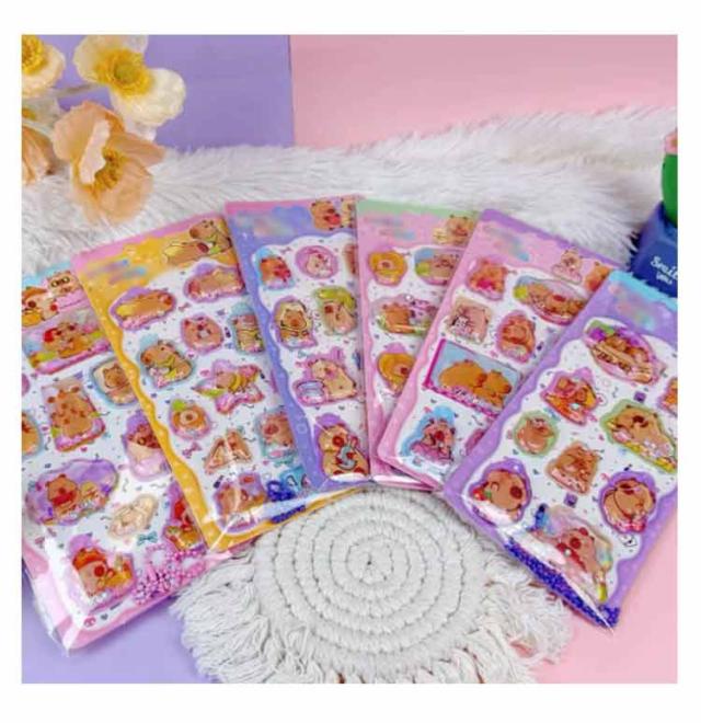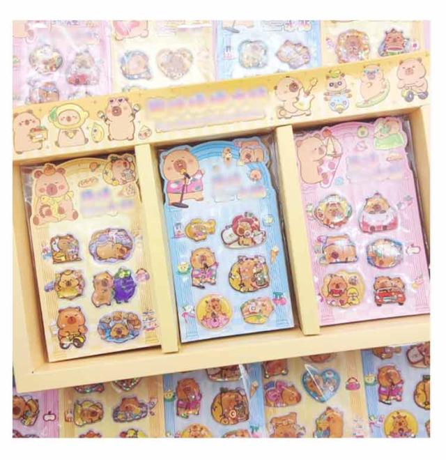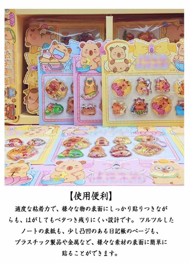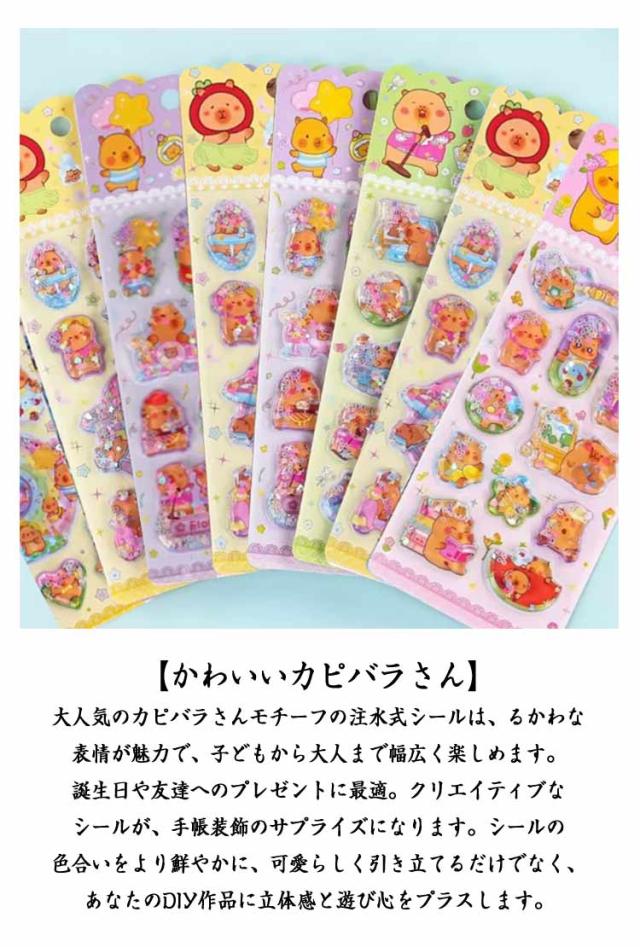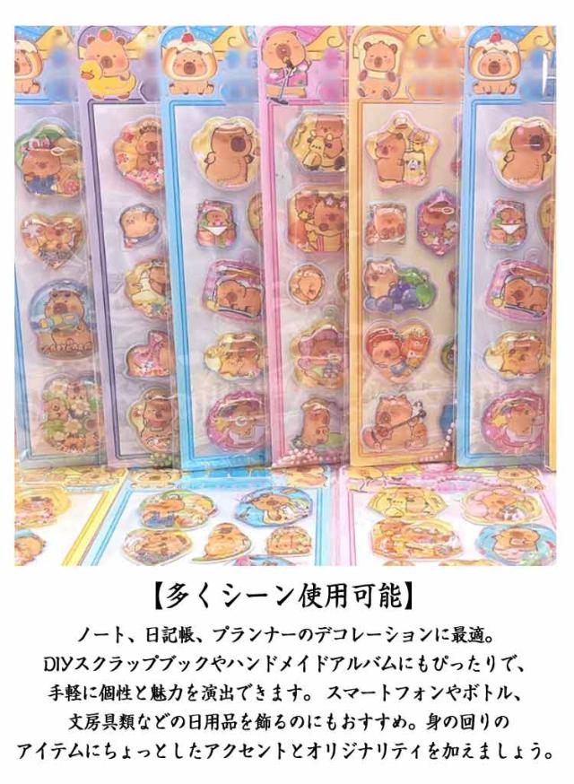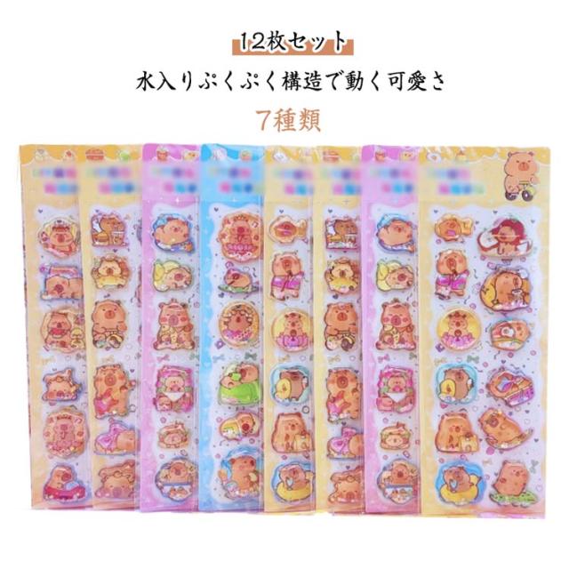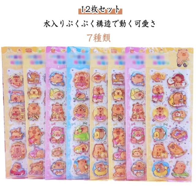 3D立体 手帳用装飾 水入りシール デコシール 水入りシール 12枚セット ぷくぷくシール シール帳 ウォーターシール 3D ぷっくり シャカシャカシール ぷっくりシール 精巧な柄 カピバラ DIY クリエイティブ ファッション 個性的 かわいい ウォーターインシール