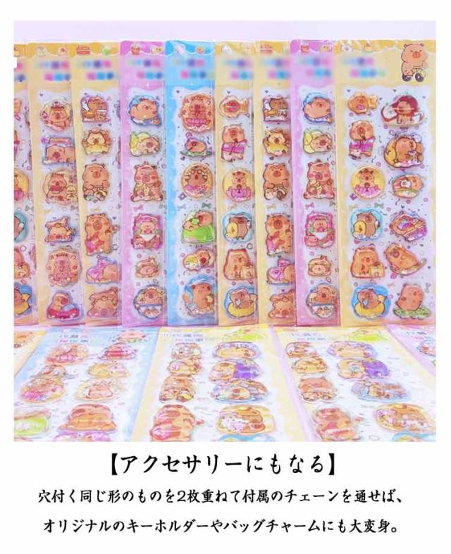 | 【12枚セット】 【7種類】 【水入りぷくぷく構造で動く可愛さ】 ぷっくりした立体シールの中に、スパンコールと水を封入したきらきらのウォーターシールです。動きに合わせてゆらめいて、見るたびに違った印象を楽しめます。デコレーションにぴったりのアイテムです。多く種類のデザインが詰まって、様々なシーンやお好みに合わせてお使いいただけます。 【かわいいカピバラさん】 大人気のカピバラさんモチーフの注水式シールは、るかわな表情が魅力で、子どもから大人まで幅広く楽しめます。誕生日や友達へのプレゼントに最適。クリエイティブなシールが、手帳装飾のサプライズになります。シールの色合いをより鮮やかに、可愛らしく引き立てるだけでなく、あなたのDIY作品に立体感と遊び心をプラスします。 【使用便利】 適度な粘着力で、様々な物の表面にしっかり貼りつきながらも、はがしてもベタつき残りにくい設計です。 ツルツルしたノートの表紙も、少し凸凹のある日記帳のページも、プラスチック製品や金属など、様々な素材の表面に簡単に貼ることができます。 【アクセサリーにもなる】 穴付く同じ形のものを2枚重ねて付属のチェーンを通せば、オリジナルのキーホルダーやバッグチャームにも大変身。 【多くシーン使用可能】 ノート、日記帳、プランナーのデコレーションに最適。DIYスクラップブックやハンドメイドアルバムにもぴったりで、手軽に個性と魅力を演出できます。 スマートフォンやボトル、文房具類などの日用品を飾るのにもおすすめ。身の回りのアイテムにちょっとしたアクセントとオリジナリティを加えましょう。 【ご褒美シール】 学習や生活の中で、効果的なご褒美シールとしてお役立てください。 宿題を終えたり、進歩したり、良い成績を取ったりした時は、褒めてあげましょう。学びやがんばりを、より楽しく、前向きなものにしてくれるでしょう。 | |