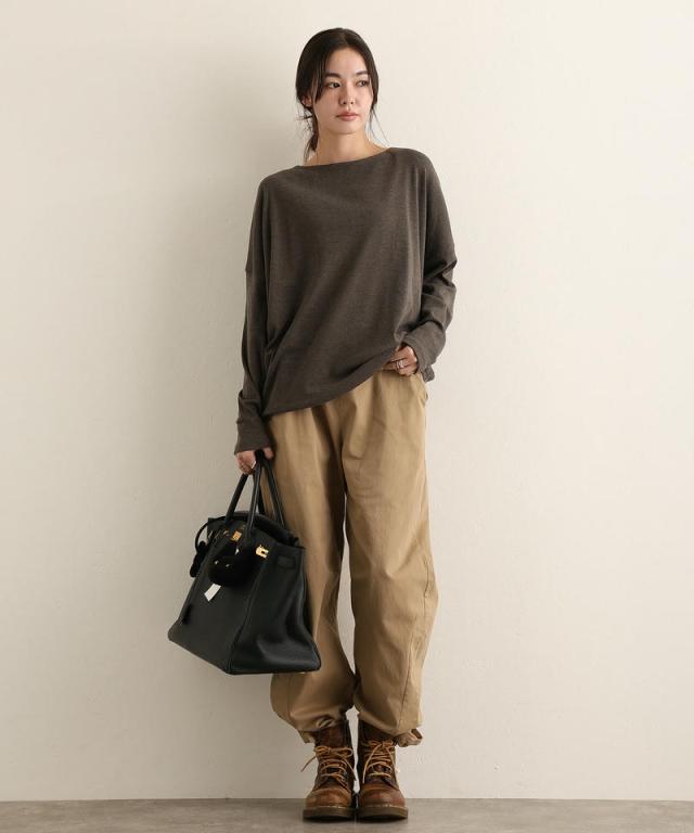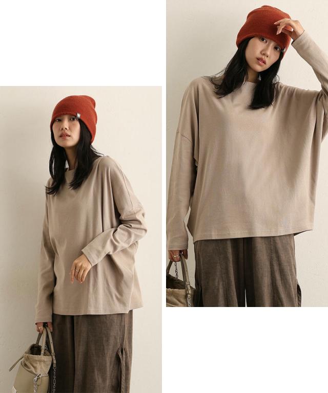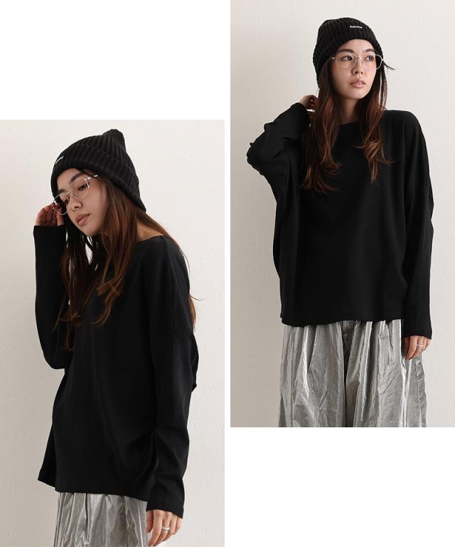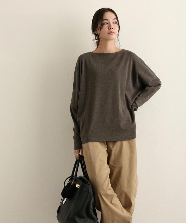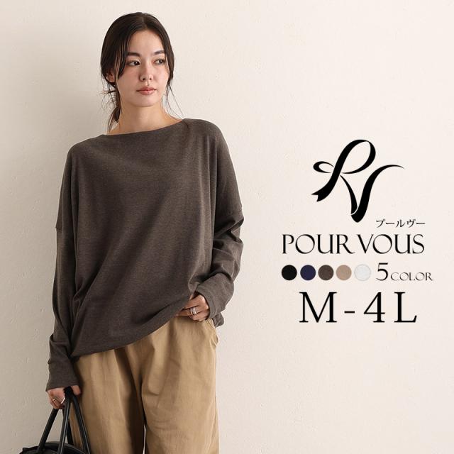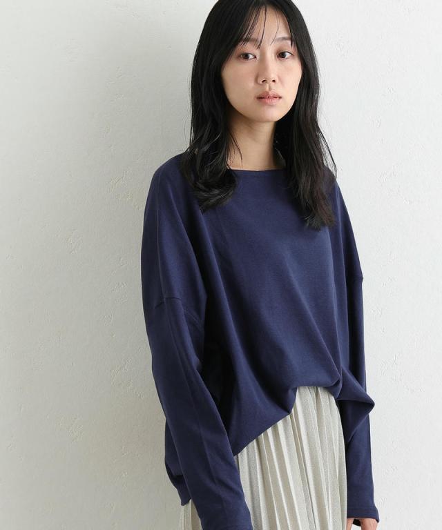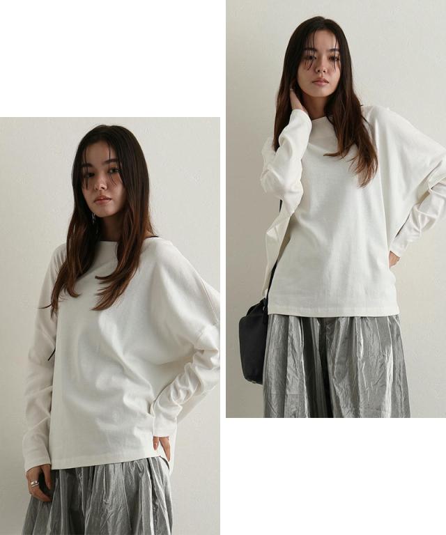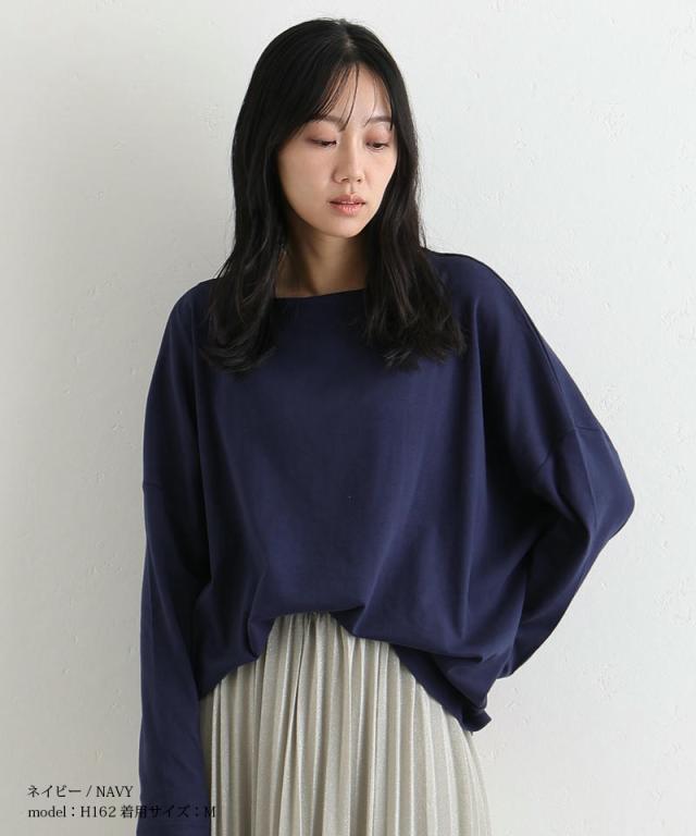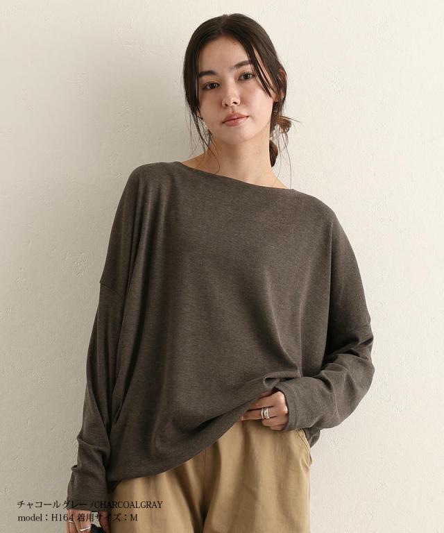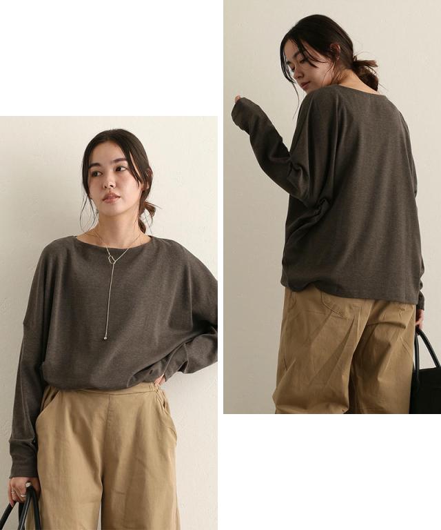 513251926 ドルマンスリーブ ボートネック Tシャツ 普段着に お出かけ お出掛け着 着やせ デイリー 抜け感 体型カバー ナチュラル ミドル丈 着回し 秋冬 大きめ 大きい 大人 リラックス 無地