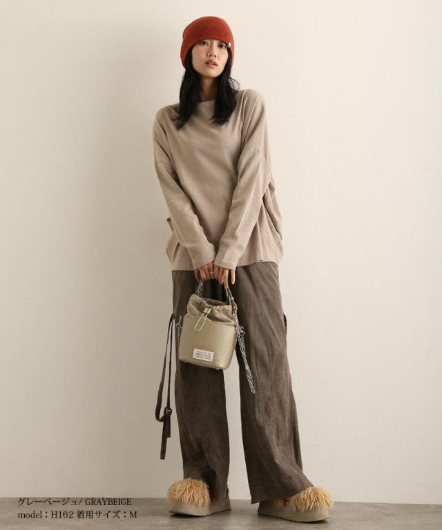 どんなボトムスとも相性がよく、一枚でラフに着ても、インナーを合わせたレイヤードスタイルにも映える万能トップス。