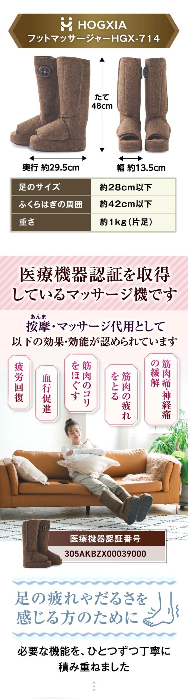 【医療機器認証】 HOGXIA 足マッサージ機 プレゼント 還暦祝い 誕生日 マッサージ機 足 太もも マッサージ 女性 男性 / フットマッサージャー EMK-714 ブラウン