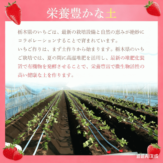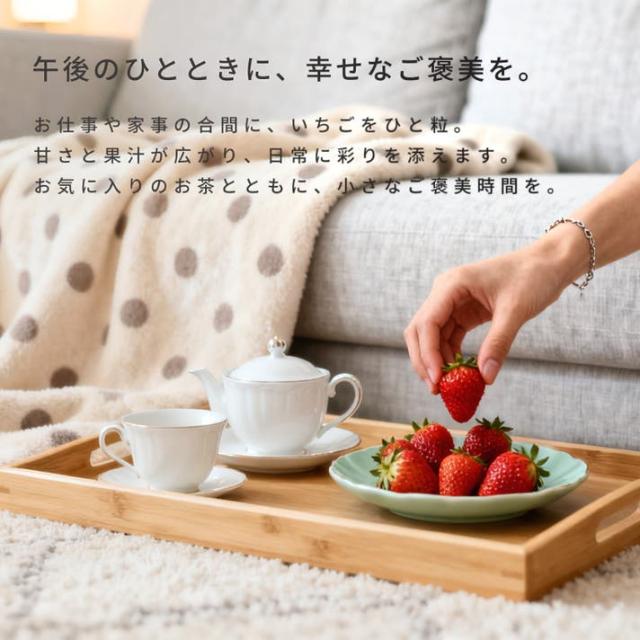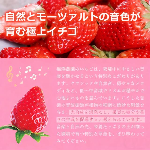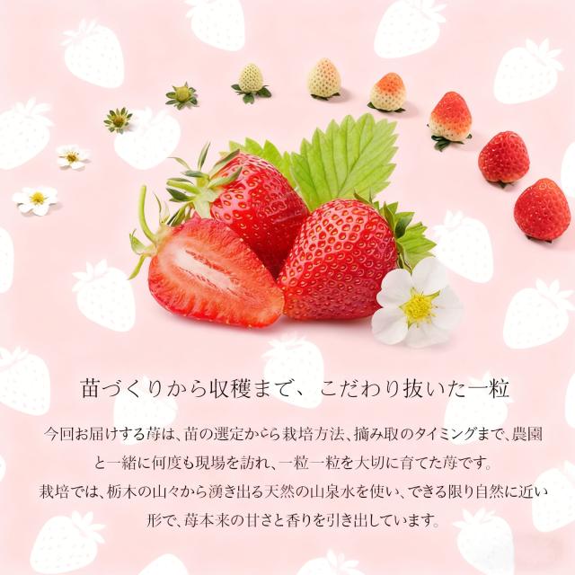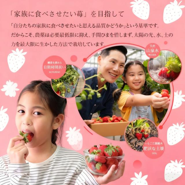 天然の山泉水で育てた、澄んだ甘さと華やかな香りのいちごです。