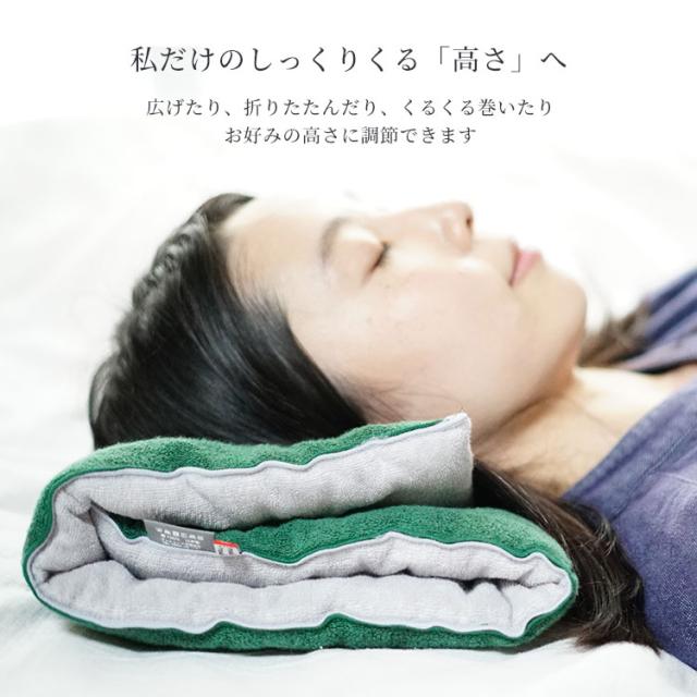【正規販売店】3カ所にふんわり綿入り。高さを調節可能。アウトドアやオフィスでのお昼寝クッションとしてもお使いいただけるタオル枕です。