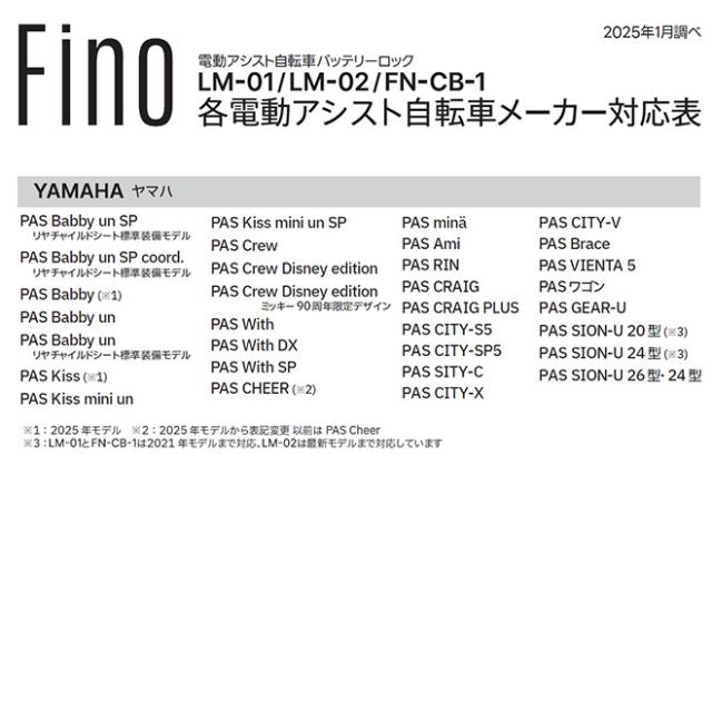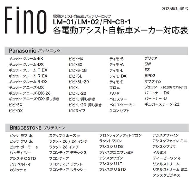 自転車 電動アシスト 【P3倍最終日】 バッテリーロック 鍵 カギ キー シリンダー Fino フィーノ LM-01 盗難防止 防犯