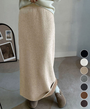 裏起毛仕様で暖かく、冬にぴったりな厚手ニットタイトスカート。