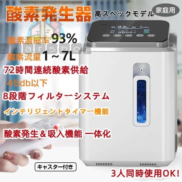 新型酸素発生器 家庭用 酸素濃縮器 酸素吸入器 93% 7L リモコン 72時間連続稼働 3人同時使用 高濃度 8段階フィルターシステム 静音運転 霧化 流量調整可能 軽量 小型 携帯 便利 ペット可 母の日、父の日、敬老の日、 高齢者