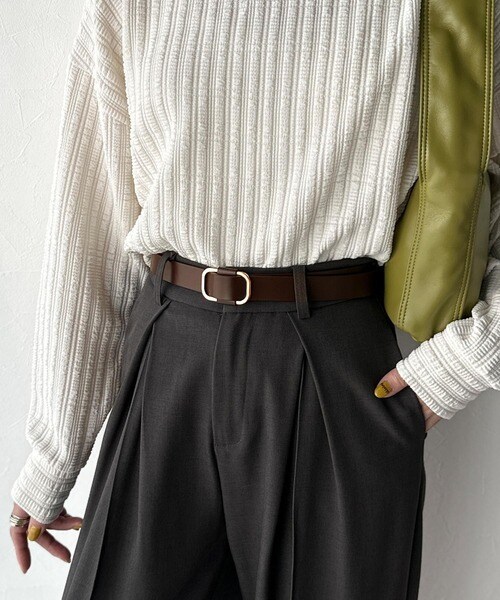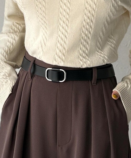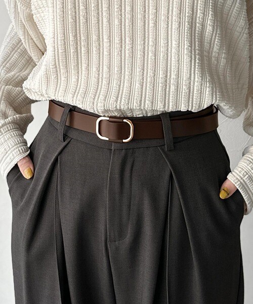 ワンピースのウエストマークとしてもおすすめ♪タックインスタイルに映えるスクエアバックルが魅力。