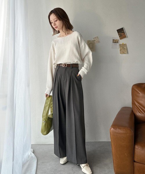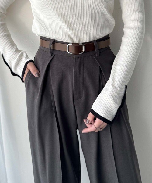 オフィススタイルでは洗練された印象に、カジュアルスタイルではウエストマークとしてスタイルアップも◎