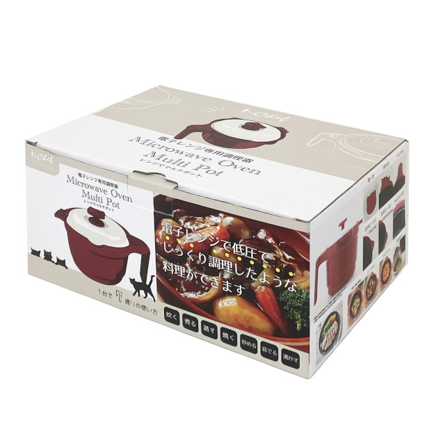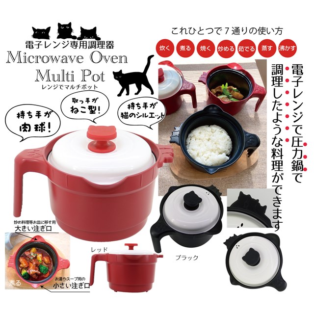 chef 電子レンジ調理器 レンジでマルチポット 70234 70235【トレードワン 猫鍋 電子レンジ調理器具 グリルパン レンジパン レシピ付き レンジ調理 炊飯器 ごはん ご飯 米 炊ける 一人鍋 煮物 カレー 蒸し 蒸す 茹でる 焼き魚 グリル 調理器具 キッチン 料理 一人暮らし】
