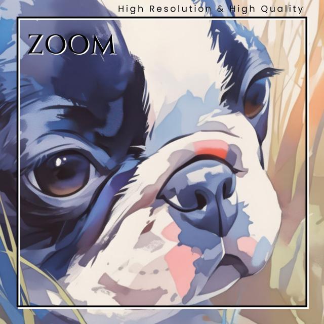 【天犬戯舞 - ボストンテリア犬の子犬 No.5】夏・テントウムシ・子犬・うちの子記念日・ペットロス・アートポスター・犬の絵・犬のイラスト