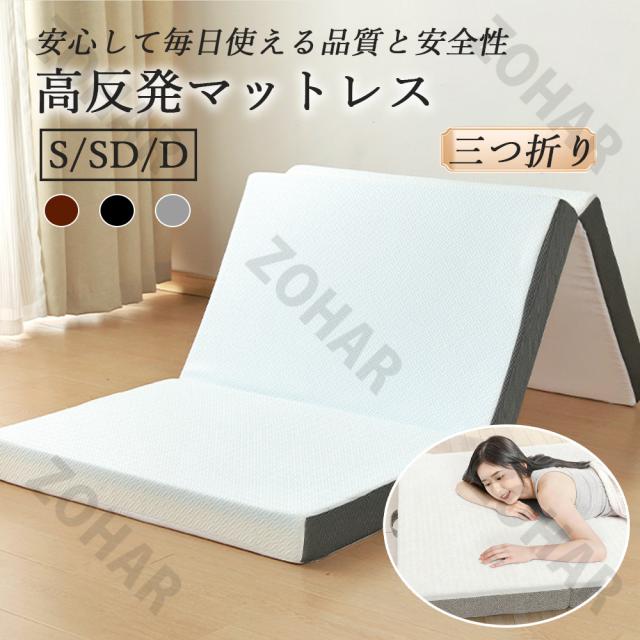 マットレス 高反発 三つ折りマットレス 極厚10cm 30D おりたたみマットレス 210N 高反発 ベットマット 敷き布団 凹凸加工 体圧分散 抗菌防臭 洗えるカバー 通気性がよい オールシーズン シングル セミダブル ダブル 三つ折 三つ折り 折りたたみ