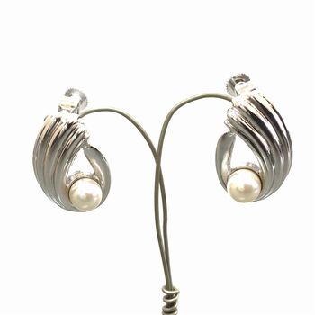 ネジバネ式 パールとクリスタルのイヤリング E 0807