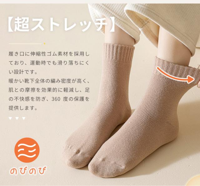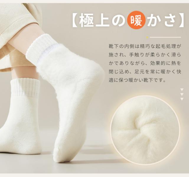 靴下 レディース ソックス もこもこ靴下 ウールソックス ルームソックス 部屋 就寝ソックス 暖かい 冬 裏起毛 厚手 保温 柔らかい ふわふわ 伸縮性 耐久性 蒸れない 無地