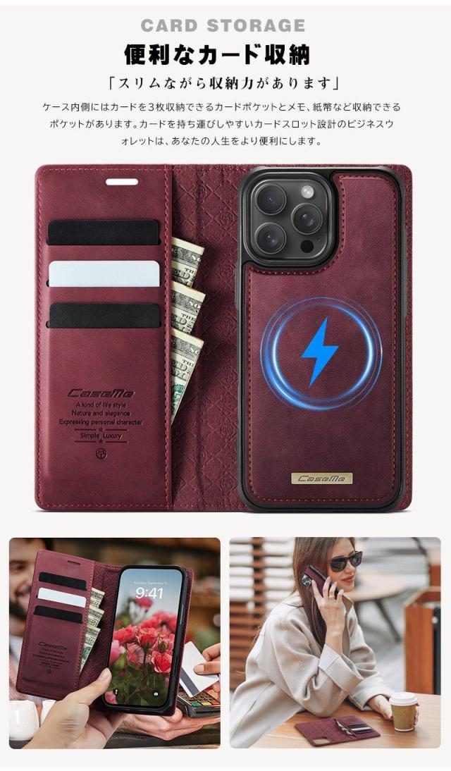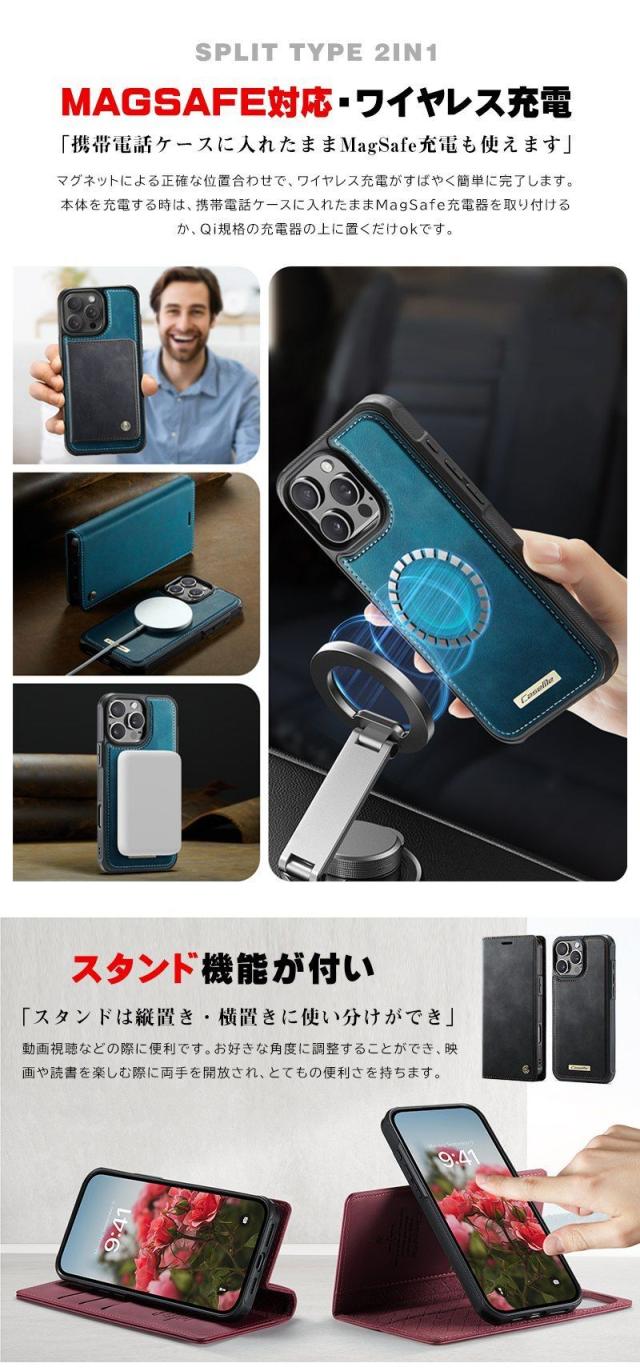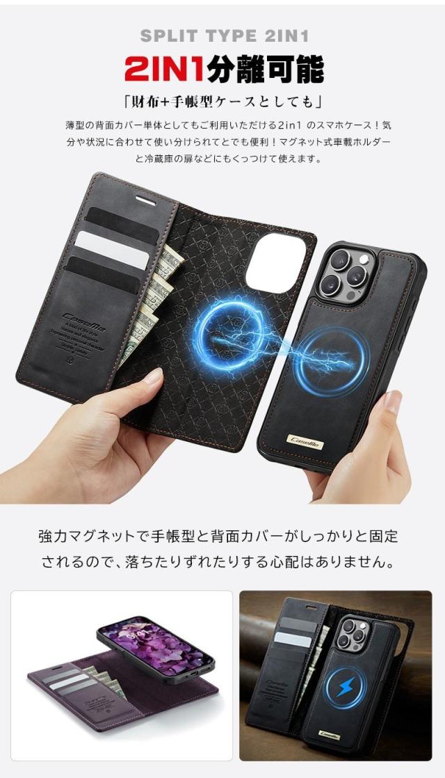 ◆大人気進化◆手帳ケースの背面には強力なマグネット搭載なので、インナーケースはいつでも自由に外すことができます。手帳型にも背面ケースにもなる便利な2in1分離型ケースです。MagSafeに対応し、置くだけで簡単にのワイヤレス急速充電を提供します。