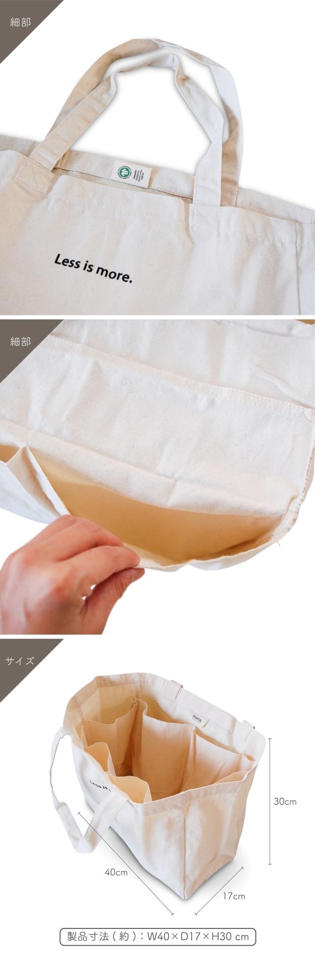 GOTS認証取得オーガニックコットン100%使用、大容量で多ポケットのミニマルでスタイリッシュなデザインのエコバッグ