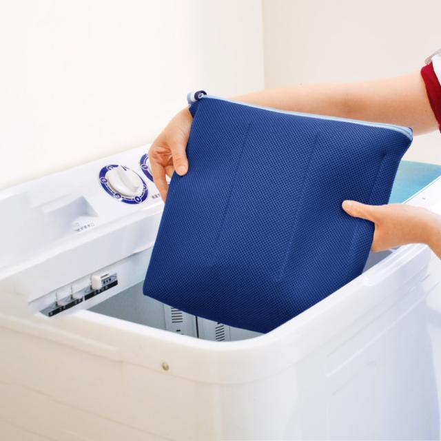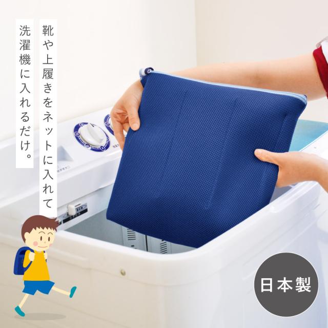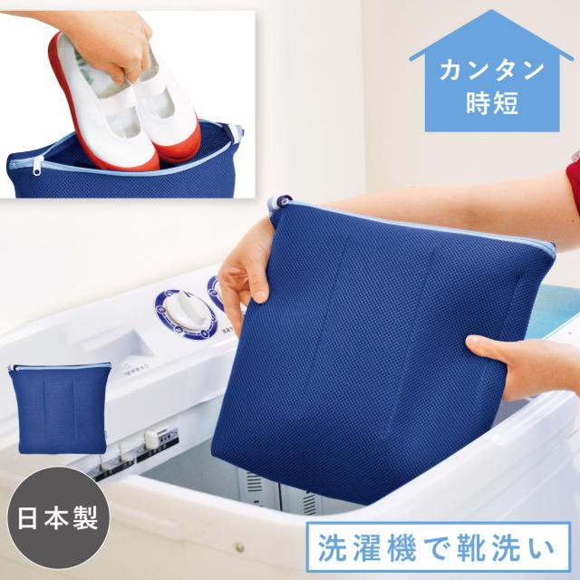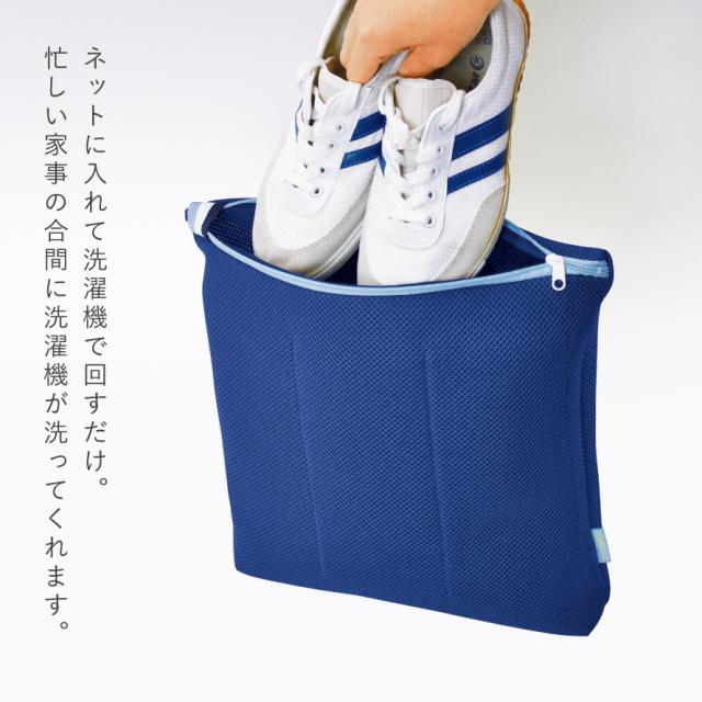 汚れた靴を洗濯機で洗える、もみ洗いするような構造のネット。汚れた靴や上履きをネットに入れて洗濯機にポンと入れるだけ。