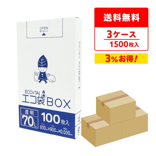 ポリ袋 ゴミ袋 箱タイプ 70リットル 薄手 透明 80x90cm 0.030mm厚 100枚x5小箱x3箱 HKU-730-3 ごみ袋 70l BOXタイプ 箱型 収納 クリア サンキョウプラテック 送料無料