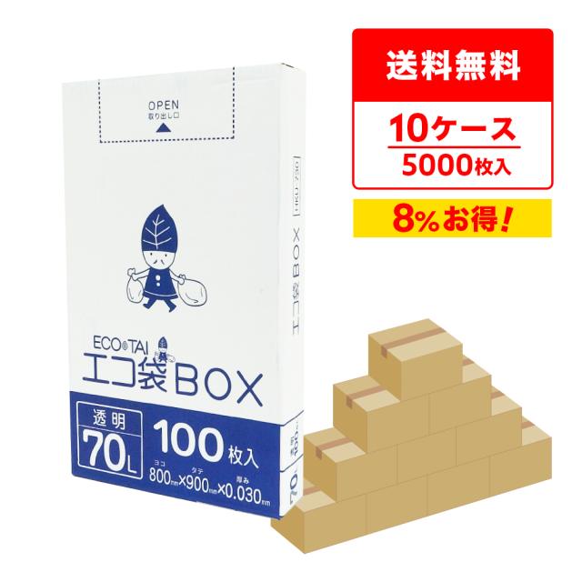 ポリ袋 ゴミ袋 箱タイプ 70リットル 薄手 透明 80x90cm 0.040mm厚 100枚x5小箱x10箱 HKU-730-10 ごみ袋 70l BOXタイプ 箱型 収納 クリア サンキョウプラテック 送料無料