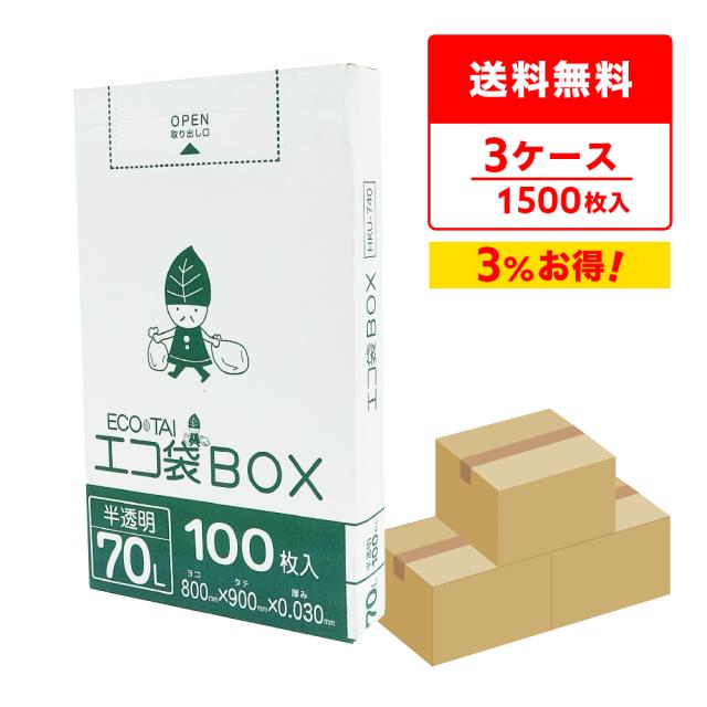 ポリ袋 ゴミ袋 箱タイプ 70リットル 薄手 半透明 80x90cm 0.030mm厚 100枚x5小箱x3箱 HKU-740-3 ごみ袋 70l BOXタイプ 箱型 収納 ホワイト サンキョウプラテック 送料無料