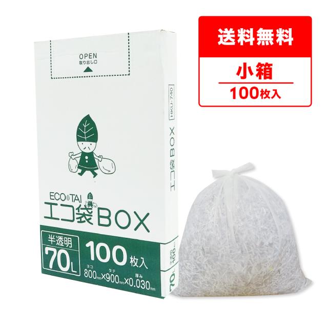 ポリ袋 ゴミ袋 箱タイプ 70リットル 薄手 半透明 80x90cm 0.030mm厚 100枚 HKU-740kobako ごみ袋 70l BOXタイプ 箱型 収納 ホワイト サンキョウプラテック 送料無料