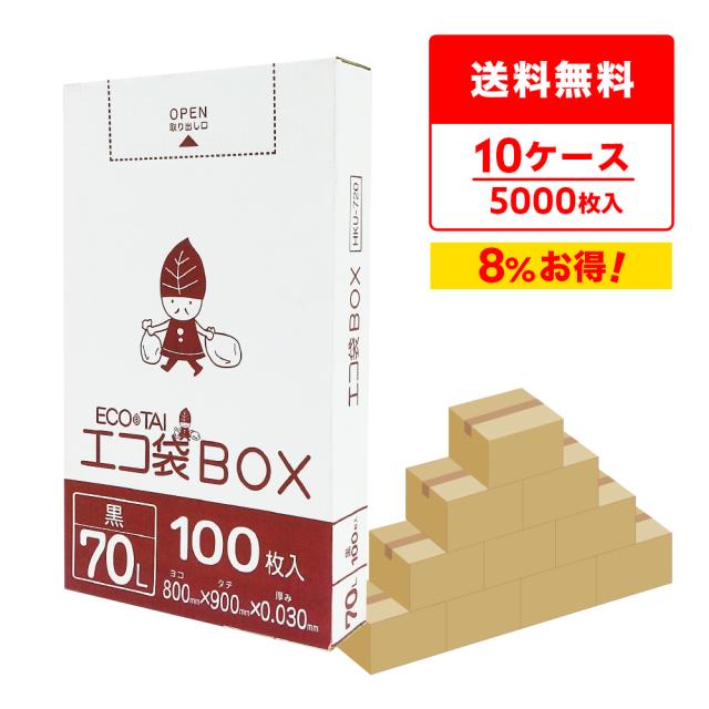 ポリ袋 ゴミ袋 箱タイプ 70リットル 薄手 黒 80x90cm 0.030mm厚 100枚x5小箱x10箱 HKU-720-10 ごみ袋 70l BOXタイプ 箱型 収納 ブラック サンキョウプラテック 送料無料