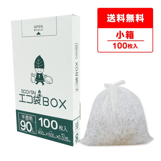ポリ袋 ゴミ袋 箱タイプ 90リットル 薄手 半透明 90x100cm 0.035mm厚 100枚 HKU-990kobako ごみ袋 90l BOXタイプ 箱型 収納 ホワイト サンキョウプラテック 送料無料