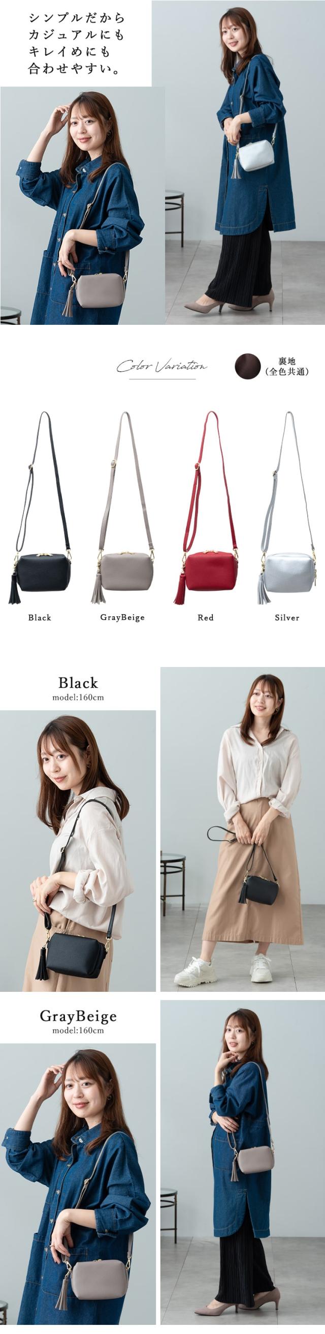 シンプルデザインにフリンジチャームがアクセントのショルダーバッグ。