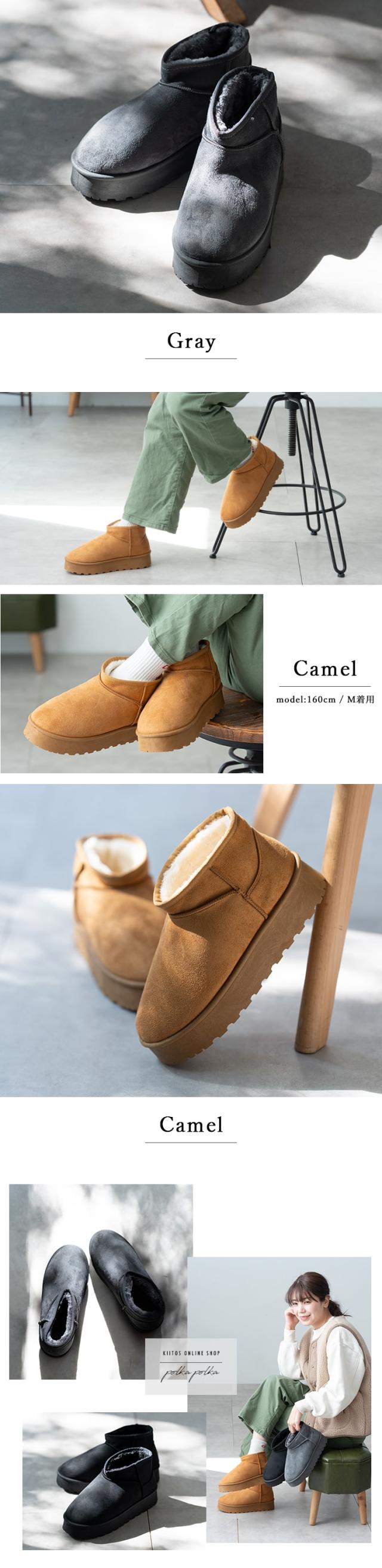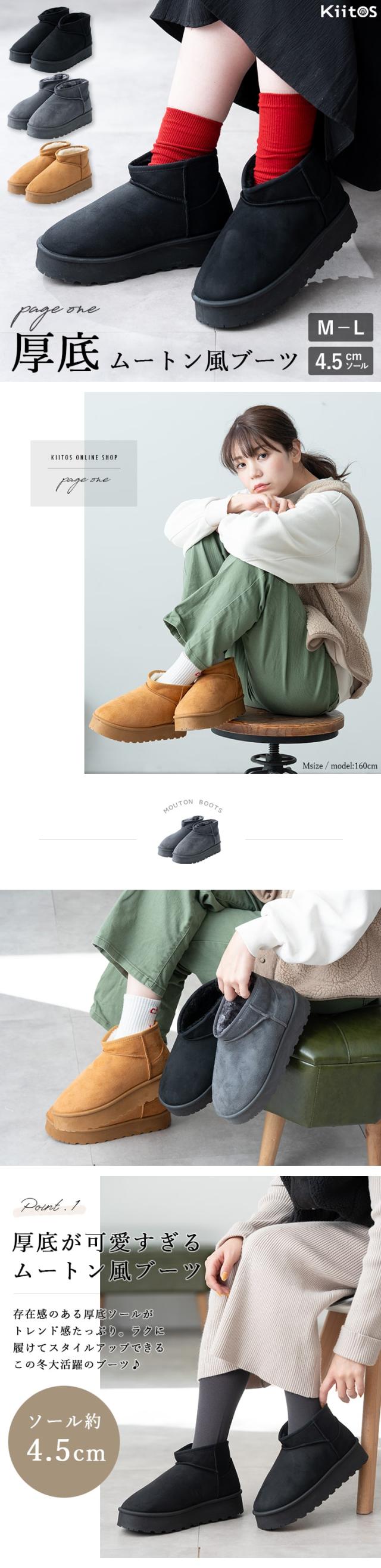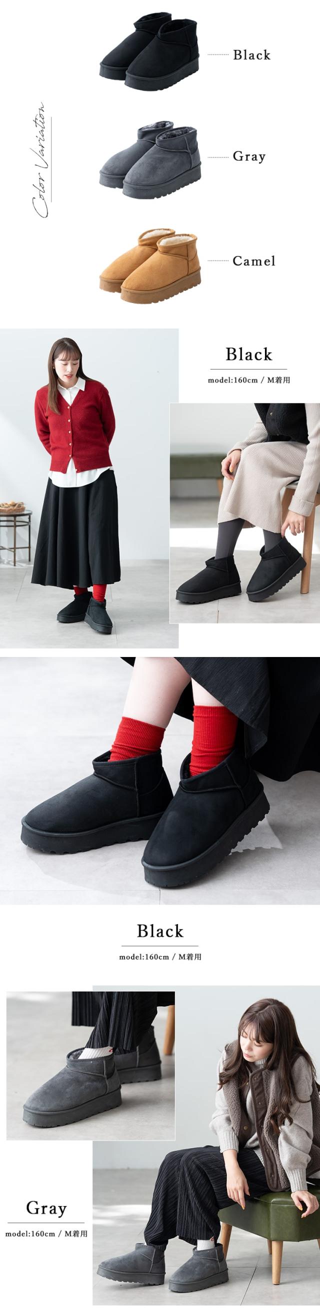 スタイルアップも、防寒も!厚底ショート丈ムートン風ブーツ。