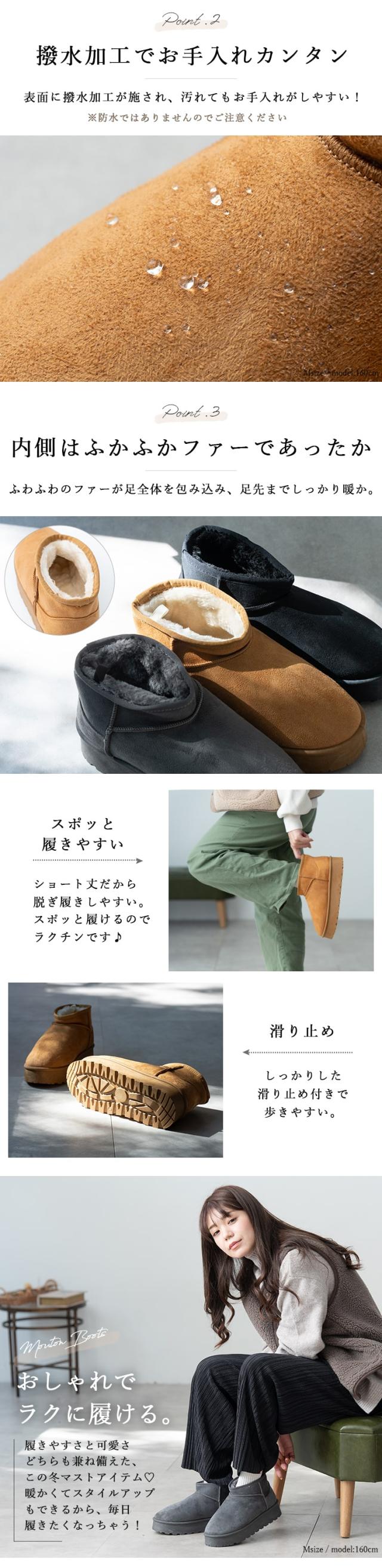 ムートンブーツ レディース 厚底 撥水 ショート 4.5センチヒール 防寒 暖かい 軽量 歩きやすい 滑らない おしゃれ かわいい 靴 ボア 痛くない 秋 冬