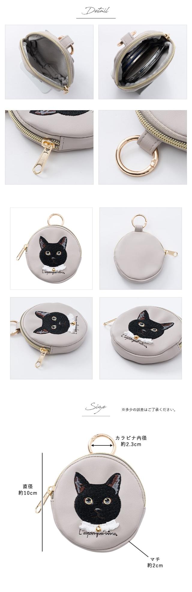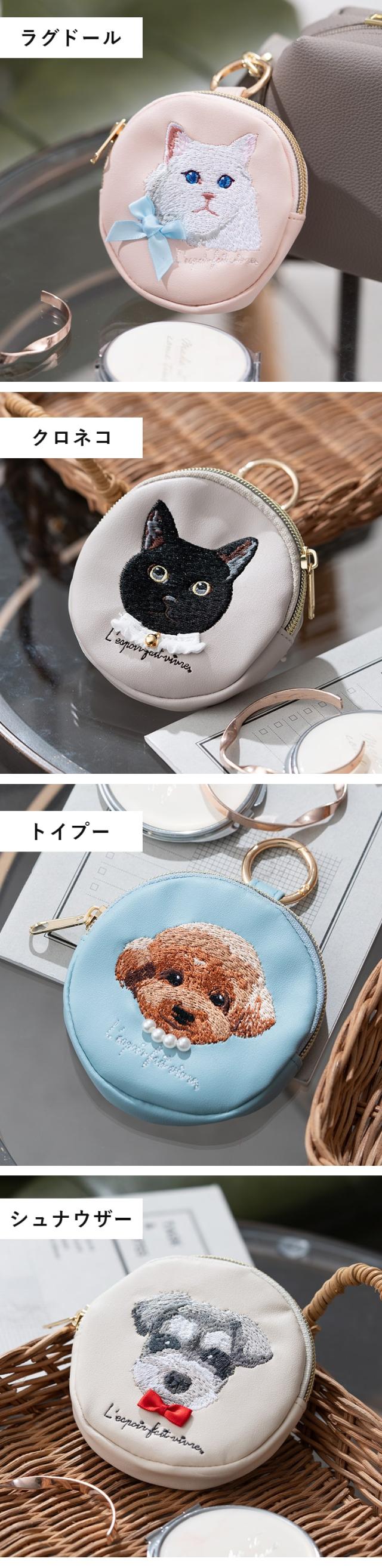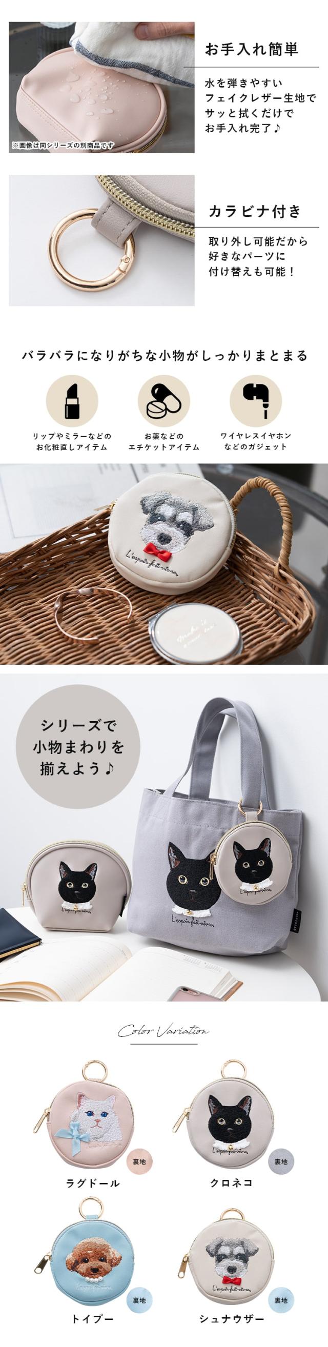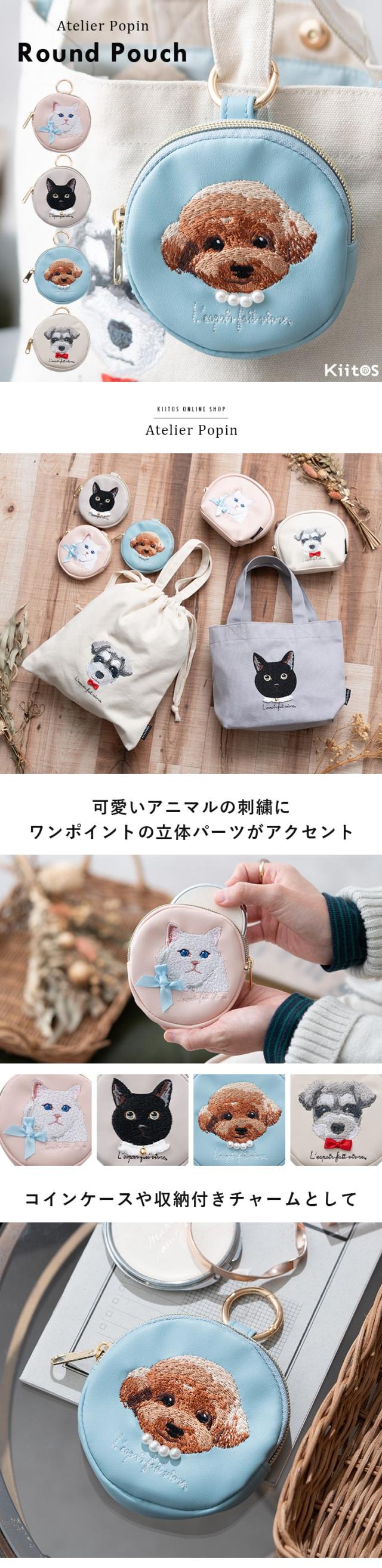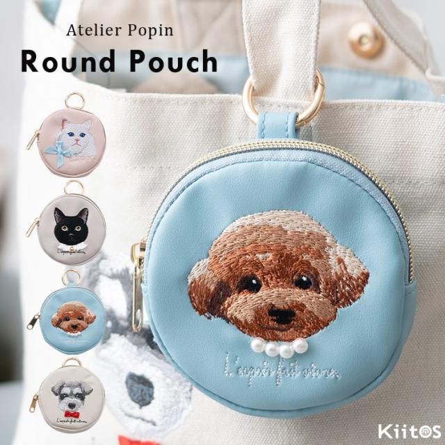 ポーチ 小物入れ 小さめ 刺繍 アニマル 動物 犬 ネコ 猫 ラウンド 丸型 ミニポーチ カラビナ バッグチャーム かわいい おしゃれ コインポーチ アトリエ・ポピン プレゼント ギフト