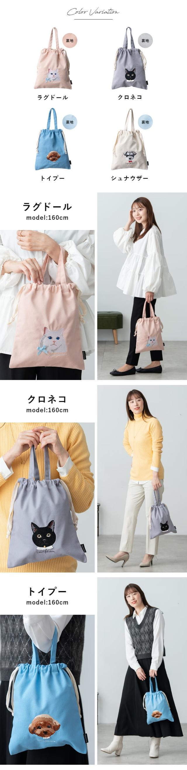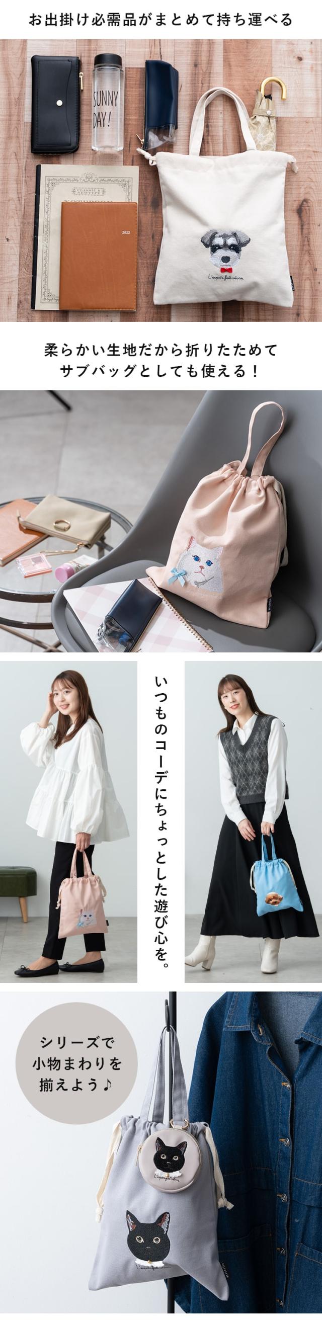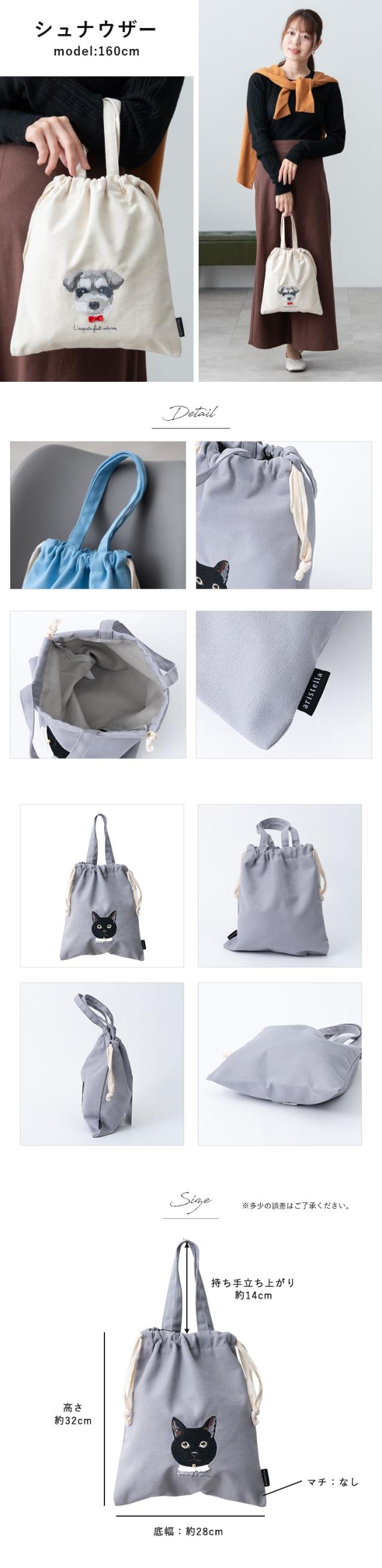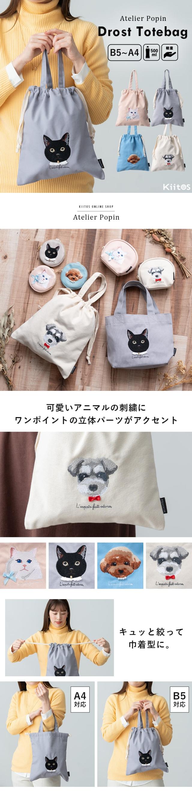 トートバッグ レディース 巾着 a4 大容量 刺繍 動物 アニマル ネコ 犬 猫 ドロスト 縦型 大きめ 軽量 おしゃれ かわいい 肩掛け 旅行 通勤 通学 買い物 アトリエ・ポピン プレゼント ギフト