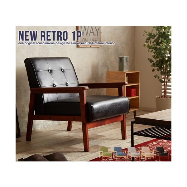 ソファー ソファ 1人掛け おしゃれ レトロ 北欧 1人用 ひとりがけ 肘掛付き 合皮レザー ファブリック 木脚 天然木 ワンルーム 一人暮らし 新生活 NEWRETRO ID003