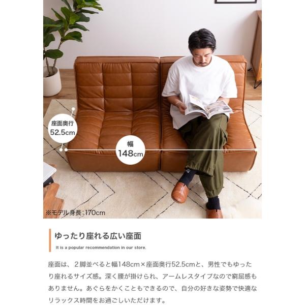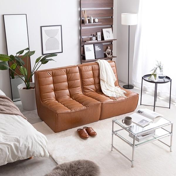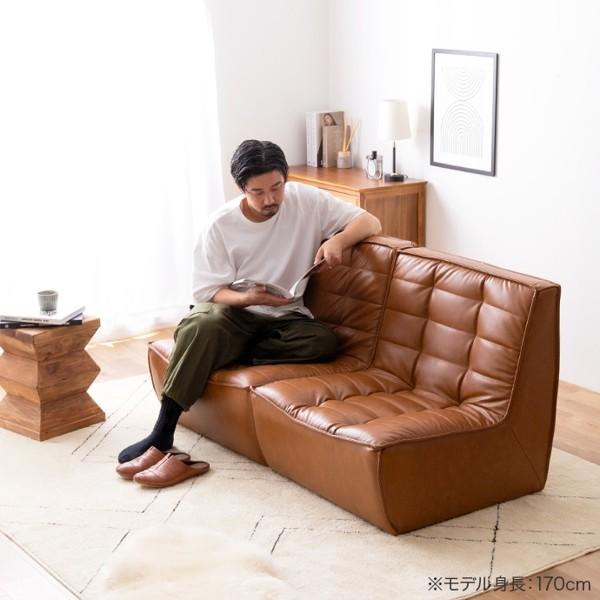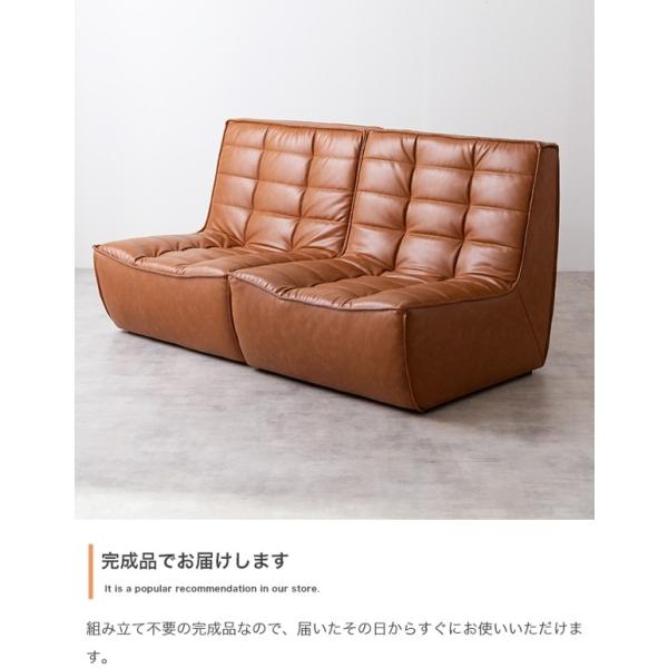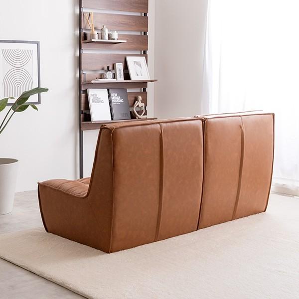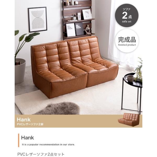 ソファ 2人掛け 2点セット ソファー 合皮レザー 肘なし ロータイプ ローソファ おしゃれ ヴィンテージ レトロ 分割式 完成品 新生活 Hank ID003