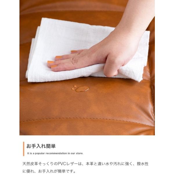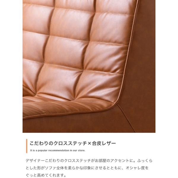 クロスステッチが施されたレザー調の張地と厚みのあるフォルムは、お部屋に置くだけで主役になるほど存在感抜群です。