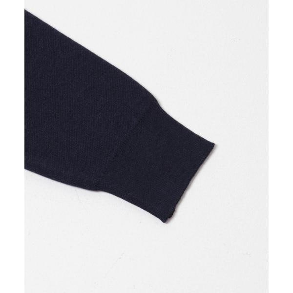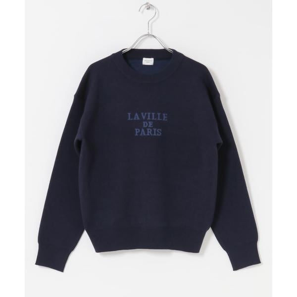 ロゴを編み込んだダブルジャガードニットでありながら、使用している糸は柔らかくハリが出にくいため、程よい落ち感を生み出し、すっきりとしたシルエットで着用できます。