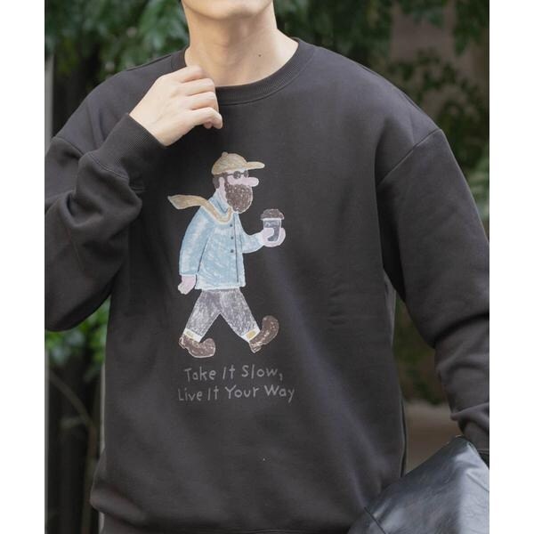 ユニークな「OJISAMPO」ロゴと、どこか愛嬌のあるグラフィックが目を引くスウェットトップス。シンプルなアウターやボトムスに合わせるだけで、ほんのりユーモアのある個性が光る主役級アイテムです。厚すぎず薄すぎない、デイリーに着やすい程よい肉厚素材を採用し、ロングシーズン活躍。イージーケアで扱いやすく、快適な着心地はヘビロテ必至。旬のリラックスシルエットで、抜け感のある大人カジュアルを楽しめます。