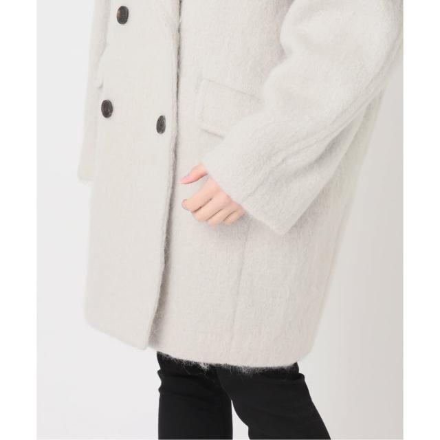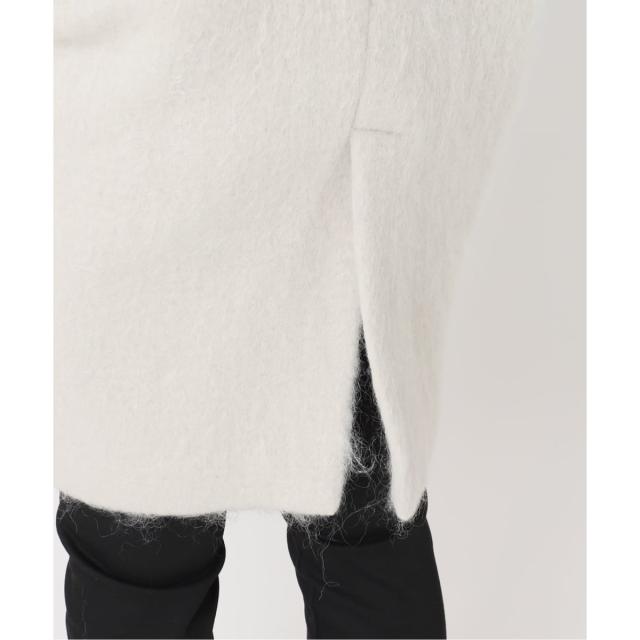ウールにモヘヤをブレンドし、シャギー加工で毛足の長さが特徴の生地で仕立てたミドル丈のコート。