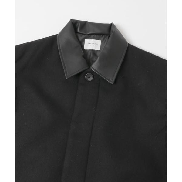 ・レザー調生地の衿をあしらった切り替えデザインがポイント