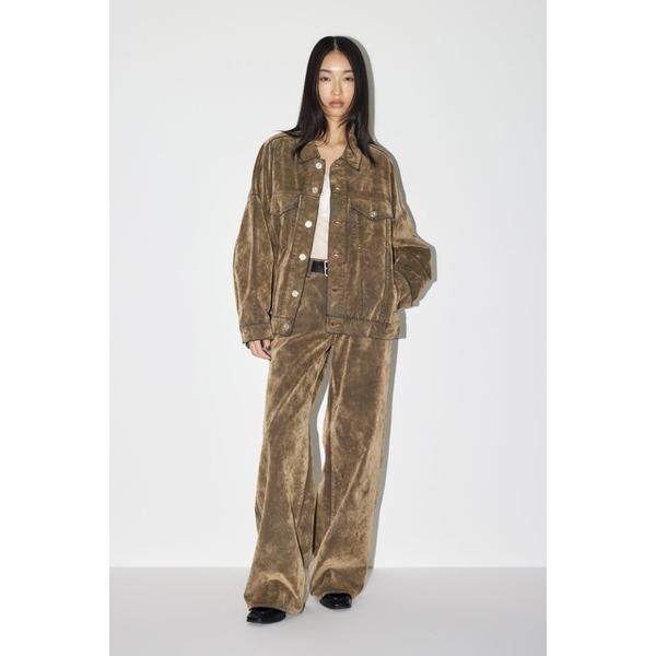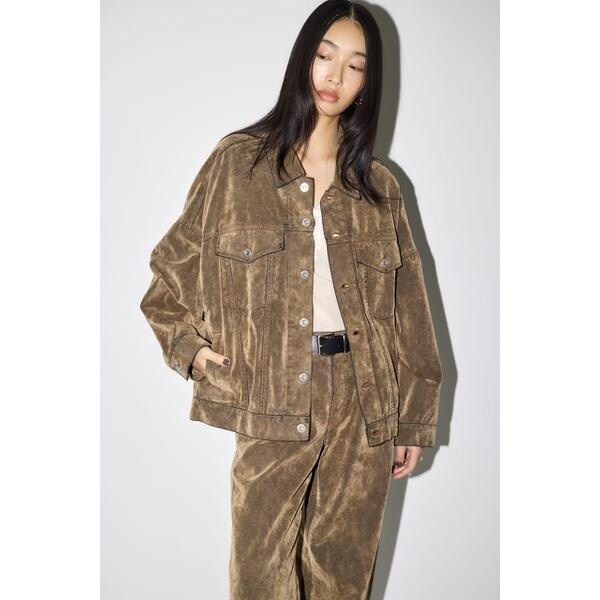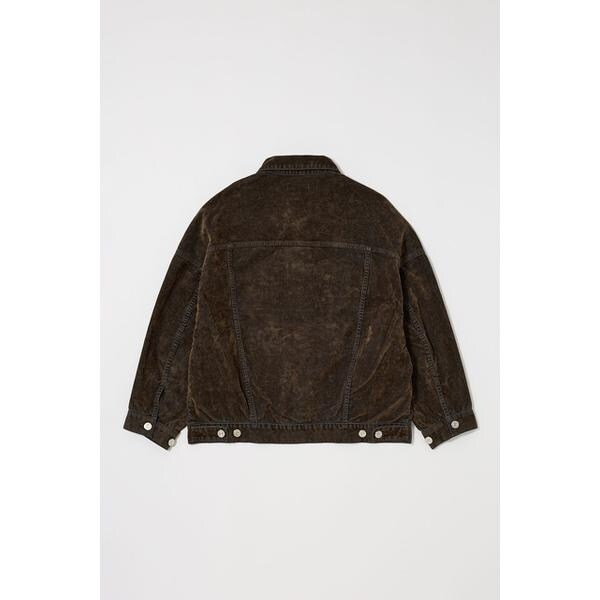【OVERSIZED CORDUROY JACKET / オーバーサイズコーデュロイジャケット】NEW SURFACE.NEW DIMENSION. MOUSSY CORDUROY JEANS.・フロッキー×ヴィンテージ加工季節感のある定番アイテムもMOUSSY JEANSの世界観で革新的な見え方に。フロッキー加工でコーデュロイを表現し、デニムのようにアタリ感、加工感を出すことができる生地を使用。初めから穿きこまれたような洗いざらし感のある加工を施し、ヴィンテージ感のある雰囲気に仕上げています。D/BRNとBEGはベースにBLKの生地を使用することで、奥行きのある色合いを表現。限定カラーのKHAはベースにインディゴデニムを使用。穿きこむごとにデニムの風合いが感じられます。羽織としてはもちろん、寒い時期に厚手のトップスを着込んでも着ぶくれして見えないオーバーサイズ。並びのボトムと合わせたセットアップのスタイリングもおすすめです。■生地透け感:なし裏 地:なし伸縮性:なし光沢感:なしお取り扱い上のご注意◎本品は一部分、または、全面にフロッキープリントを施しています。プリントの特性上、ご使用中 細かい毛羽が他のものへ付着したり、色落ち、色移りすることがあります。プリントはご着用(使用)につれて脱落したり薄くなります。特に過度な摩擦が加わると、顕著になりますのでご注意下さい。◎本品は素材の特性上色落ちします。洗濯、クリーニング、着用(使用)時に他の衣類や雑貨、家具類に色移りする事があります。特に汗や雨等で湿った状態では、色落ちが顕著になります。白、淡色との組み合わせは避け、お取り扱いには十分ご注意下さい。本品は、素材特性上以下の点にご注意ください。・着用や洗濯につれ退色し、独特な色変化が生じます。・雨や汗等の湿った状態、着用や洗濯、クリーニングによって他の衣類、雑貨、家具等に色落ちします。・白・淡色との組み合わせは避けて下さい。・淡色は光(紫外線)に弱いため変色する事があります。直射日光や蛍光灯の光に長時間さらさないようご注意下さい。・クラッシュやダメージ加工の製品は、着用や洗濯につれて加工箇所の広がりが生じる事がありますがご了承下さい。・着用や洗濯につれ多少の縮みやネジレ(製品がねじれて見える状態)が生じる事があります。・ボタンやリベ