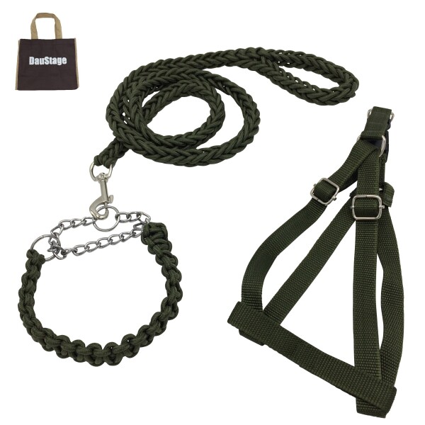 | 商品名 | 編込み タイプ チョーク 首輪 ハーネス リード 小型犬 中型犬 大型犬 トートバッグ 付き 4点セット (M, グリーン) |