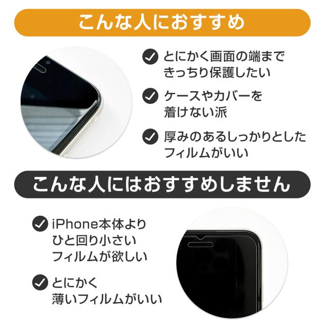 [ 液晶の端までしっかり保護! 液晶画面をギリギリまで守る全面保護フィルム ] 【 優れた5つの ポイント 】 (1) 通常のフィルムではカバーしきれない、液晶画面のフチまでしっかり保護 (2) 最新の6Dエッジ加工で、フロントガラスにぴったりフィットし、段差を感じさせません (3) 硬度10Hの強化ガラスで、傷から守りながら鮮やかな画質をキープ (4) オレオフォビックコーティングで汚れも簡単に拭き取れる高機能フィルム (5) UVカットとブルーライトカットで、目にも優しい保護を実現 【 デザイン性抜群! ギリギリまで保護するフルカバーガラスフィルム 】 iPhone本体の美しさを際立たせるシームレスデザイン。 指紋認証ホールなしで、見た目の美しさと機能性を両立。 機種別に最適な厚みで加工され、操作性を損なわず一体感を高めます。 【 最高レベルの耐久性と飛散防止機能 】 液晶画面のギリギリまでカバーすることで、日常生活での細かい傷を完全に防ぎます。 万が一の割れにも飛散防止加工が施されており、バッグの中でも安心して持ち運べます。 【 オレオフォビックコーティングと優れた吸着性 】 特殊コーティングで油や水を弾き、指紋や汚れも簡単に拭き取れるため、常にきれいな状態を保てます。 高い吸着性で、持ち運び中に剥がれる心配もなく、液晶画面をしっかり守ります。 iPhoneを劣化から守りながら、高い透過率と気泡防止機能で、貼り付けも簡単な全面保護フィルムです。 |