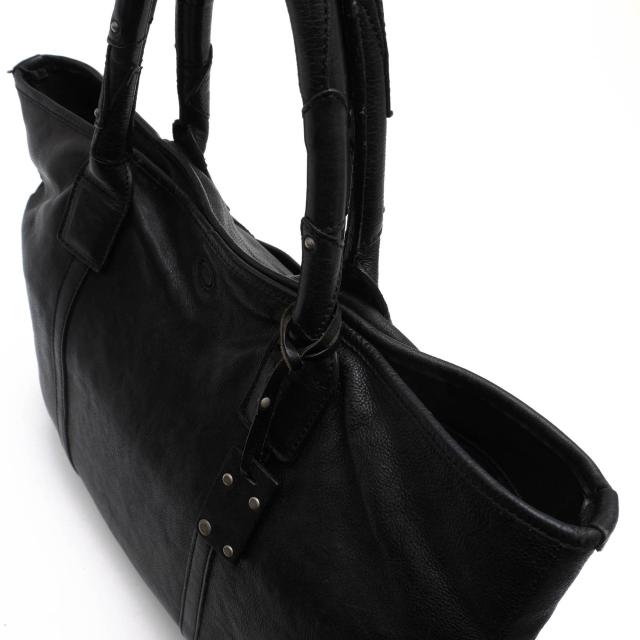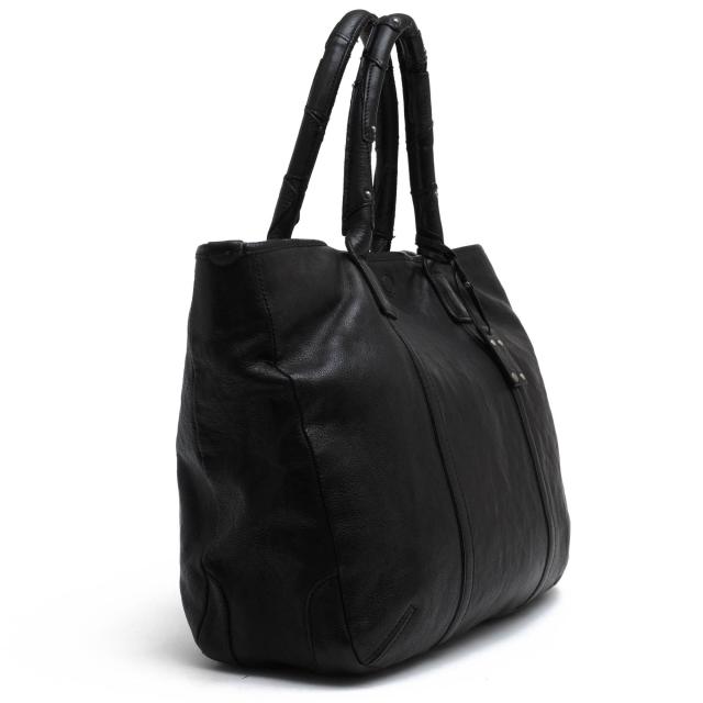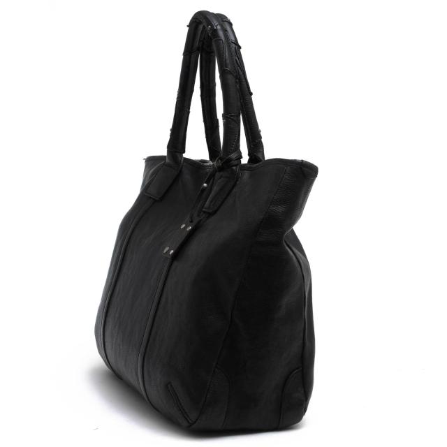 上質なキップレザー(子牛革)を使用した大容量のトートバッグです。使い込むほどに美しいエイジングが楽しめるレザーは、手染めによる独特の表面のムラ感と軽くしなやかな質感が魅力的です。シンプルかつエレガントなデザインで、日本製で、品質にもこだわりが感じられます。バッグの開閉はスナップボタン式で、外側にスナップボタンポケット、内側にファスナーポケットと小物入れポケットが備わっており、整理整頓に便利です。A4サイズの書類やタブレット、その他小物類を収納できる大容量設計です。