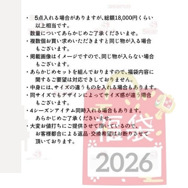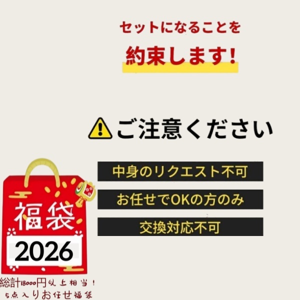 ※福袋の中身については、当店にて通常お取り扱いしている良品の商品をお詰めいたします。 当店の商品構成をご納得の上ご注文下さい。