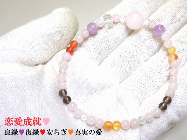 恋愛成就・復縁・良縁・誠実な人との縁結び・目標達成・やすらぎ・リラックス・人間関係向上★ローズクォーツ・カーネリアン・水晶・ラベンダーアメジスト・スモーキークォーツ★ブレスレット★パワーストーン★護符(霊符)