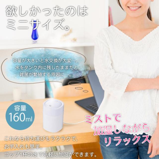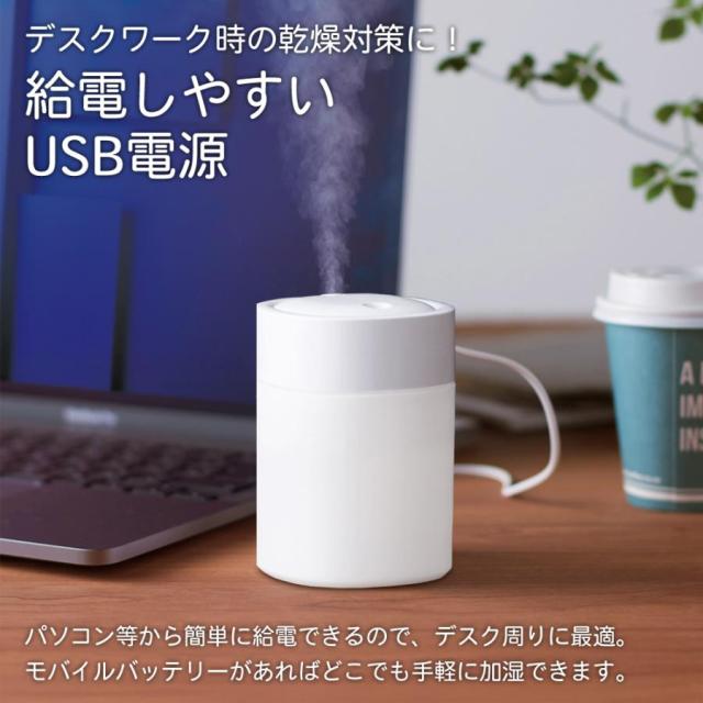 デスクやサイドテーブルなどへ置くのに便利な「USB卓上ミニ加湿器」です。